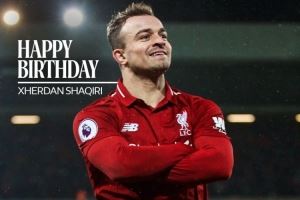 利物浦官方社媒晒出沙奇里的生日海报,配文:“生日快乐,沙奇里。”