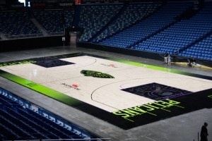 鹈鹕搭配城市版球衣的主场地板涂装!“水鸟”也变凶狠了!