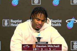 体育资讯11月18日讯 NBA常规赛,热火115-113险胜尼克斯。赛后,戴维恩·米切尔接受了采访。