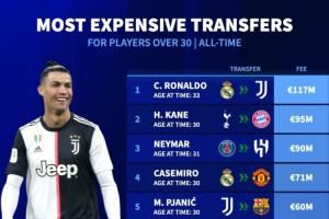 30岁以上球员转会费榜: